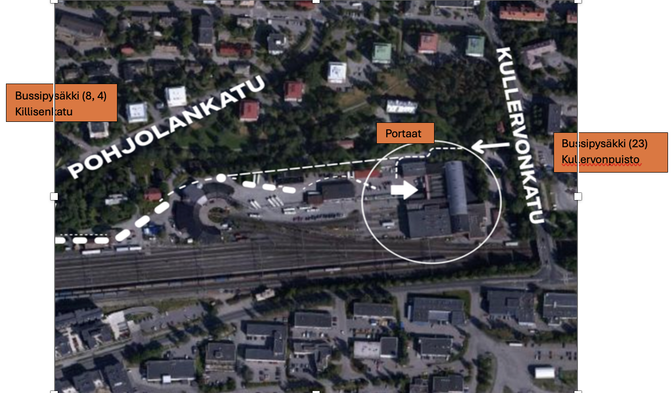 Jos tulet Pohjolankadun kautta, seuraa näitä ohjeita: