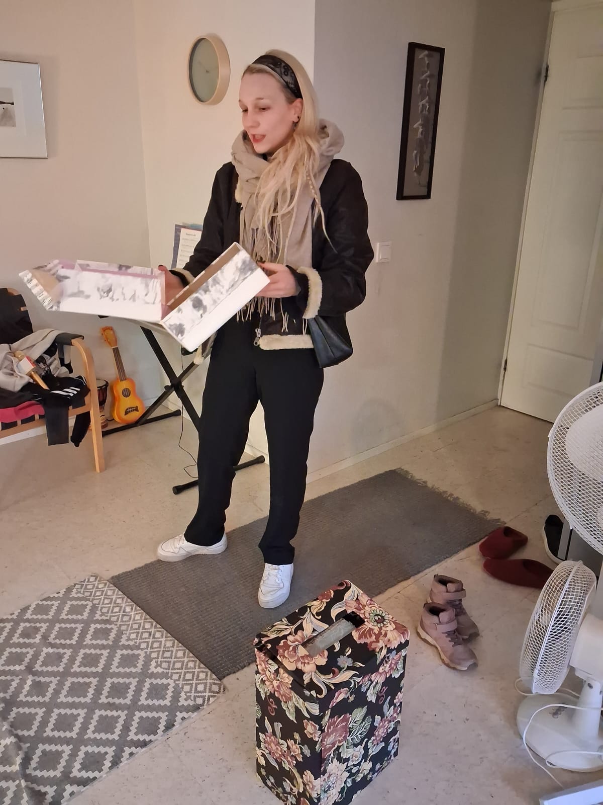 Rakkauslaatikot lähdössä Helsingistä Kuopioon. Kuvassa Malisa, joka on tehnyt laatikot.