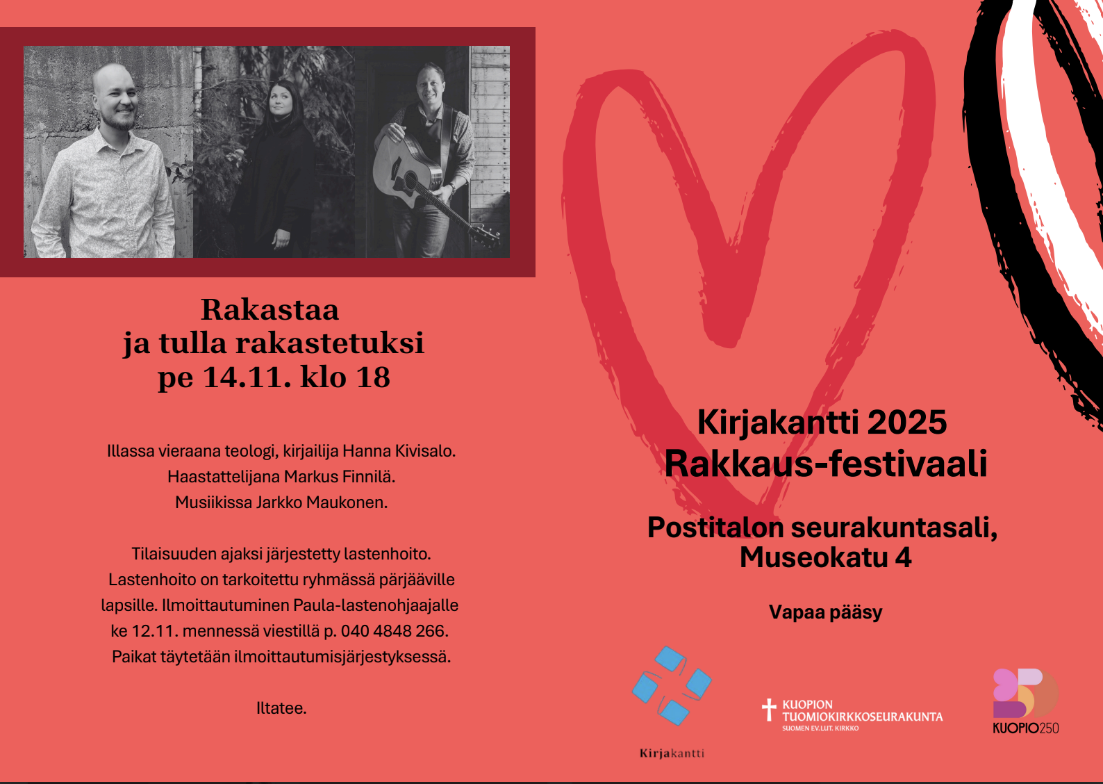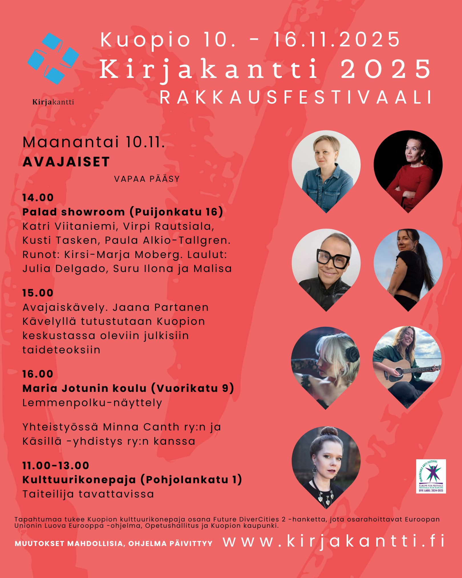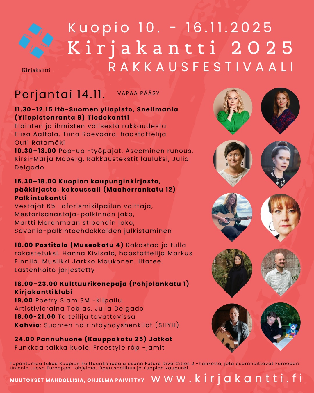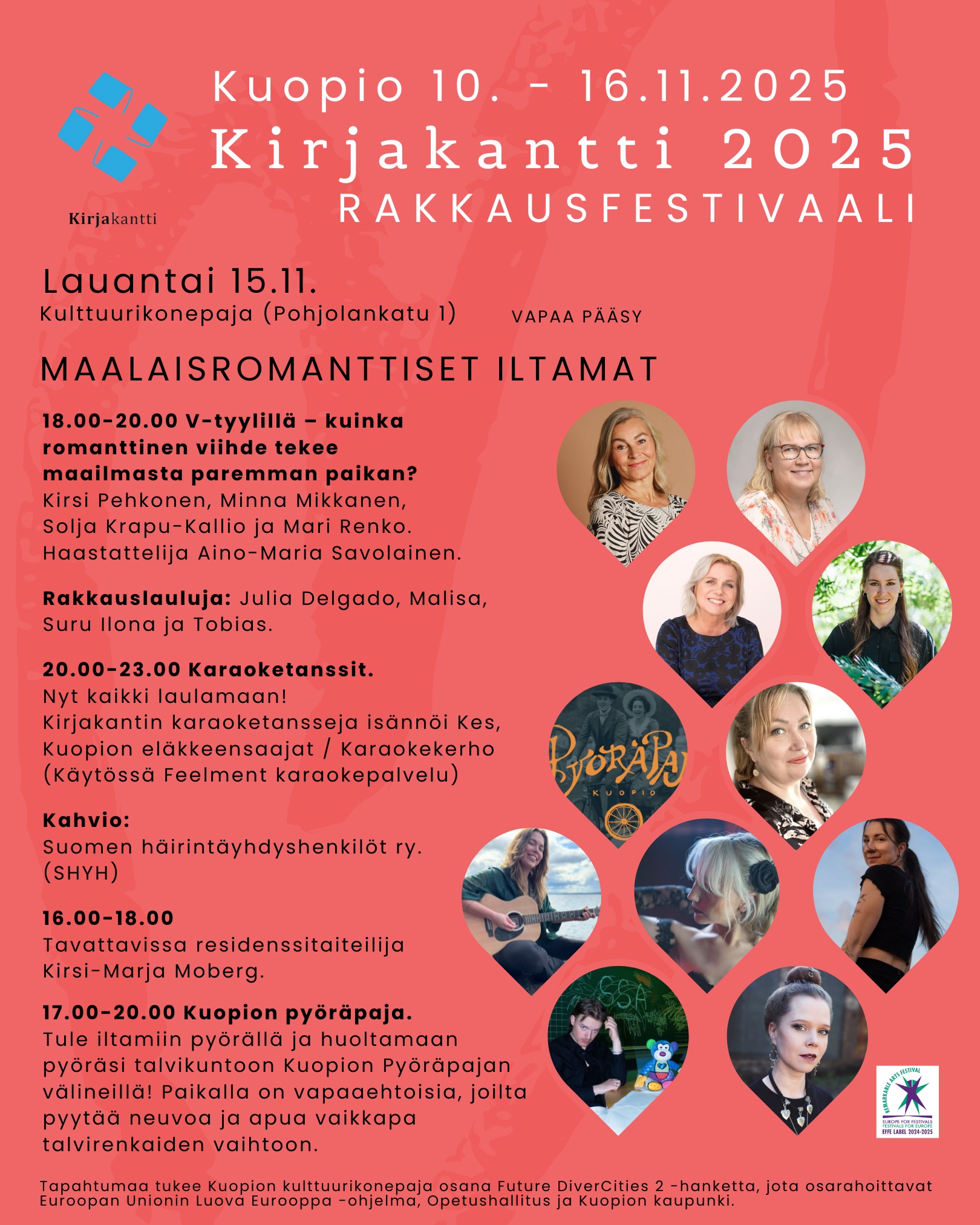 Tervetuloa Kirjakantti 2025 Rakkaus-festivaalin avajaisiin! Tule mukaan koko avajaistapahtuman ajaksi tai piipahda kuulolle johonkin kohtaan!